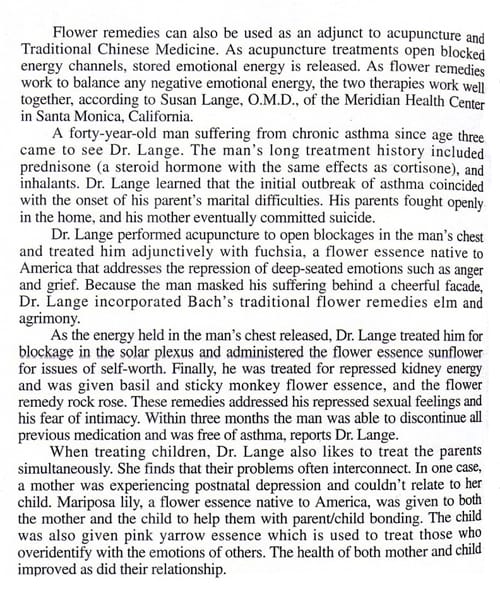 Alternative Medicine -The Definitive Guide, compiled by The Burton Goldberg Group, 1993 - book cover and excerpt from page 236 article on Flower Essences and Holistic Health